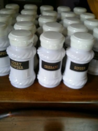 Title (ebay affiliate link): Retro/Mid Centrury 23 Milk Glass Rope Swirl Spice Jars Set Labeled