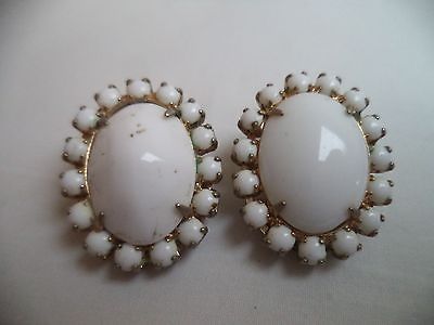 STUNNING VINTAGE GOLD TONE JULIANA STYLE MILK GLASS CLIP EARRINGS!! 4449X
