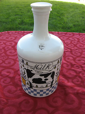 68 OZ. MILK GLASS BOTTLE JUG LILLIAN VERNON VINTAGE COWS & CHECKERBOARD