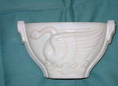 VTG Art Deco 1939 Macbeth-Evans Opaque Milk Glass SWAN SONG Planter Vase Sugar
