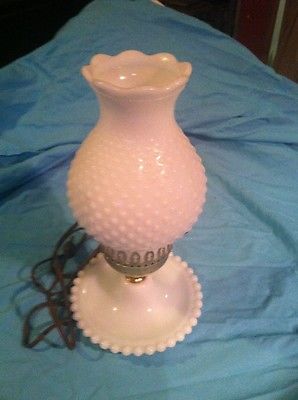 Title (ebay affiliate link): Vintage Electric Milk Glass Hobnail Lamp Hurricane White Table Light Desk Light