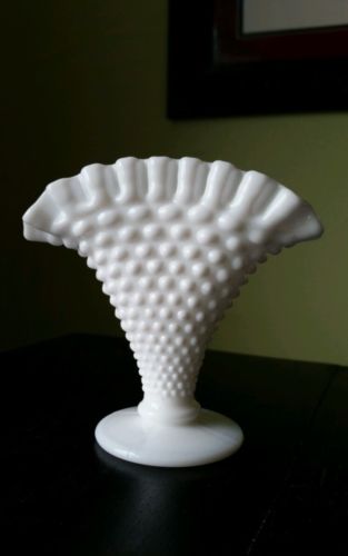 Title (ebay affiliate link): Fenton Hobnail Milk White Glass 4" Fan Vase Ruffle Edge Perfect!