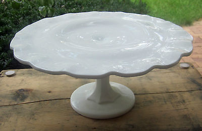 WEDDING PEDESTAL CAKE PLATE STAND WHITE MILK GLASS 11 INCH DIAMETER