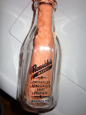 Vintage Glass Milk Bottle Madison, Ind. Rousch's Dairy