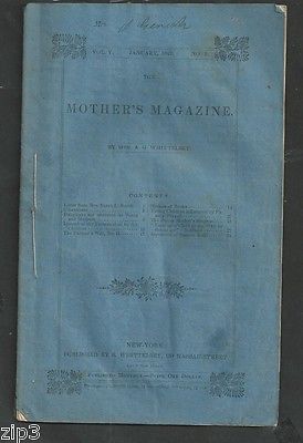 Title (ebay affiliate link): 1837 Mrs. A. G. Whittelsey-MOTHER'S MAGAZINE-Original-Vol V No 1