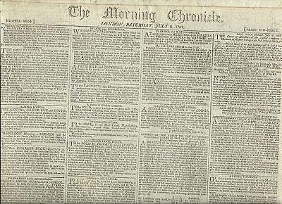 1797 Engtish newspaper "THE MORNING CHRONICLE" London July 8, 1797