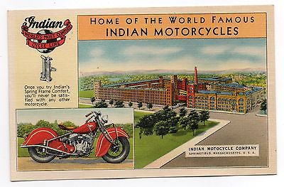 1940's Indian Motorcycle Co. Advertising, Linen, Colorful Post Card Ex. Cond.