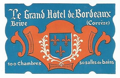 GRAND HOTEL DE BORDEAUX luggage label (BRIVE)