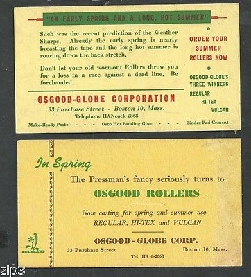 Title (ebay affiliate link): 2 1940's Ink Blotters-OSGOOD-GLOBE CORP-Printer Rollers BOSTON, Mass
