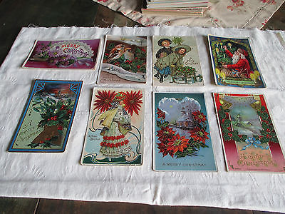 8 ANTIQUE CHRISTMAS POSTCARDS GOLD EMBOSSED SANTA HOLLY POINSETTIA&