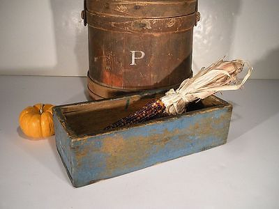 AAFA Small 19th c Pine Table Box Antique Candle Box Original Blue Milk Paint