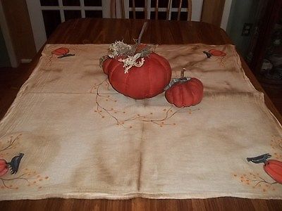 Title (ebay affiliate link): Hand Painted Extremely Grubby Table Topper Crow Pumpkin, Vines Berries Primitive