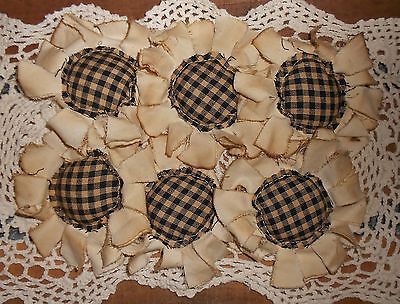 Primitive Grungy Homespun Flowers Ornies Bowl Fillers Set of 6