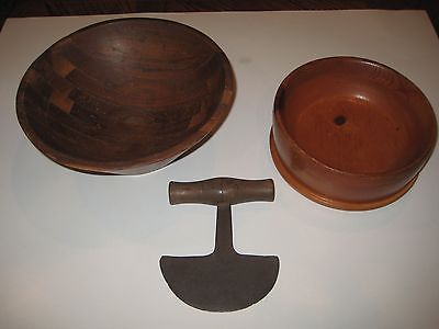 old vintage primitive country kitchen WOOD wooden DOUGH BOWL CHOPPER farm tool