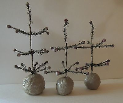 Title (ebay affiliate link): Primitive Set FEATHER TREES with Snowball BASE 9.5" + 2 - 8" Frosted Trees