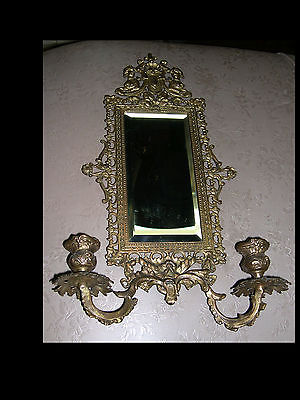 Mid Century Wall Sconces Gold Gilt Ormolu Candle Holder Beveled Mirror.