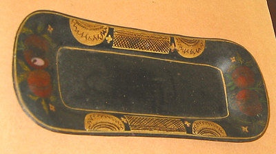Vintage Tole Tin CANDLE SNUFFER TRAY - FGC fruit 9.5in c1860 original paint