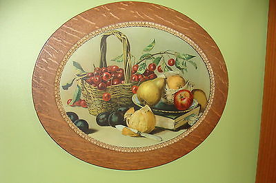 Antique Oak & Gesso Oval Frame with Old Fruit Print