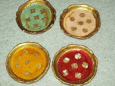 VINTAGE ITALIAN ANTIQUE GOLD FLORENTINE COASTERS 1950'S 4"