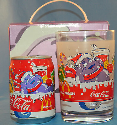 McDonald's Grimace Promo Glass Merry Christmas 2001 Box Foreign Coca Coke Can