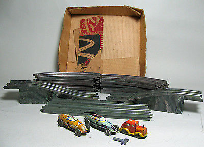 Title (ebay affiliate link): LOUIS MARX & CO. MAR BAKELITE STREAMLINE SPEEDWAY RACE CAR SET WITH BOX