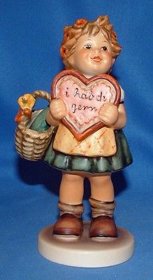 Hummel Goebel 387 - Valentine Gift, Girl holding a heart and basket, tmk5 !!