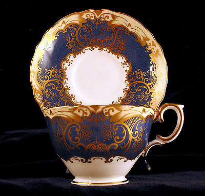 VINTAGE TEACUP & SAUCER SIGNED BY ART. CROWN STAFFORDSHIRE COBALT BLUE EC