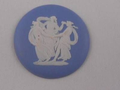 Title (ebay affiliate link): WEDGWOOD 19th c. White on Pale Blue Jasperware THREE 3 GRACES Medallion Cameo