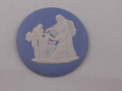 WEDGWOOD 19th c. White on Pale Blue Mythological Medallion Cameo #1