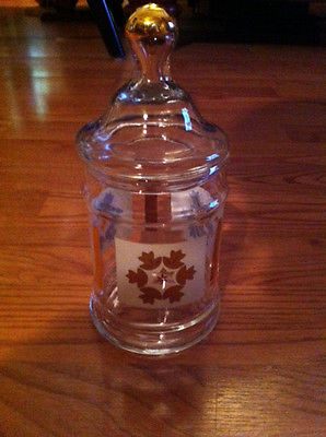 Title (ebay affiliate link): Vintage Clear Glass Apothecary Jar, Storage Container with Lid, Gold Trim, 7"