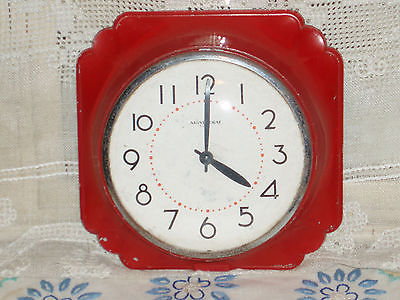 Vintage Art Deco 1930s Aristocrat Red Metal Wind Up Kitchen Wall Clock Repair