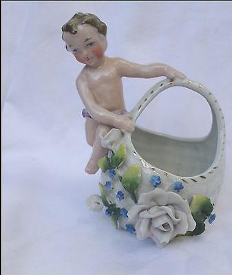 Antique Figural Basket / Dish / Vase - GERMANY - ROSE - Elfinware
