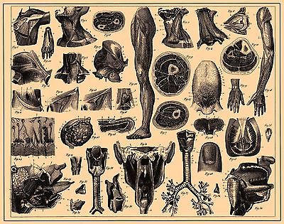 VINTAGE REPRODUCTION HUMAN ANATOMY BODY DISECTION ORGANS 13X19 PRINT