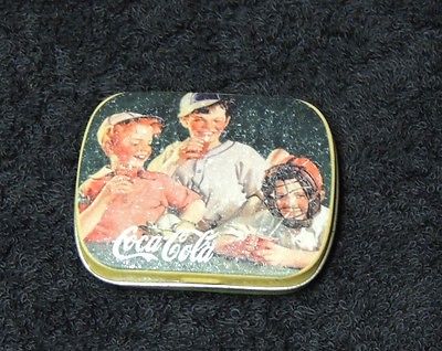 Title (ebay affiliate link): Small Coca Cola Coke Tin Box -Kids Playing Baseball-- Pill Box, Mint Box**