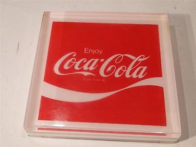 Title (ebay affiliate link): Vintage Enjoy Coca Cola Lucite/Acrylic Coca Cola Bottling Co. Buyout Paperweight
