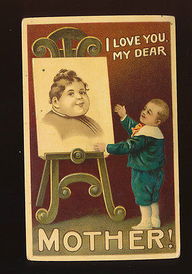 Antique 1910 Postcard "I Love You My Dear Mother-Boy & Mom-Vintage-hhh128