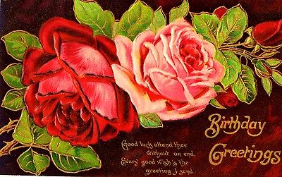 Title (ebay affiliate link): Vintage Birthday Postcard ~ Pink & Red Roses ~ Embossed ~ Germany ~ Circa 1910