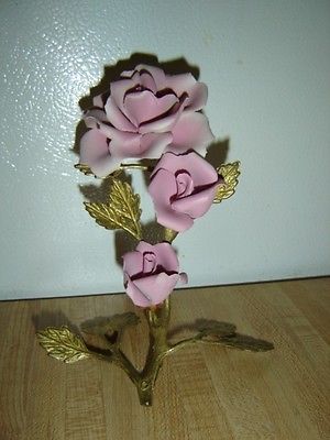 Title (ebay affiliate link): Capodimonte Style Pink Roses on a Golden Branch with Leaves