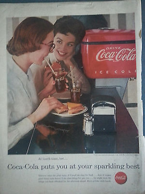 1955 Coca Cola Glass Ice Cold Dispenser Women Lunch Sandwich Original Print Ad