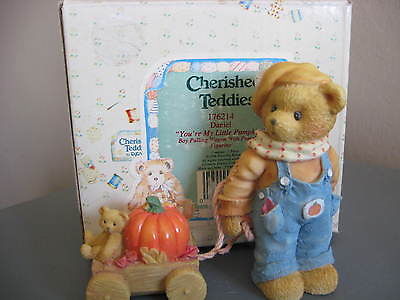 Title (ebay affiliate link): CHERISHED TEDDIES--DANIEL---"YOUR my LITTLE PUMPKIN" with Wagon. #176214