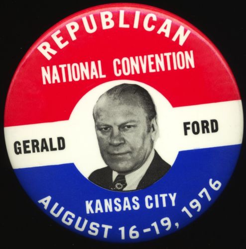 Title (ebay affiliate link): Gerald Ford 1976 Republican National Convention GOP pin button in Kansas City