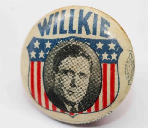 Title (ebay affiliate link): WILLKIE celluloid pin back button, c.1940 - A.G. TRIMBLE
