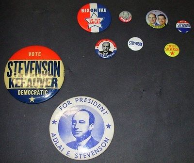 Title (ebay affiliate link): Adlai Stevenson 9 Pin Button Lot 1952, 1956 Democratic Presidential Candidate