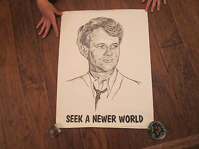 1960's RFK Robert Kennedy SEEK A NEWER WORLD Campaign Political Poster Students