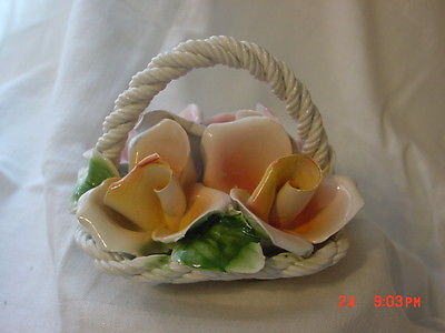 Capodimonte White Porcelain Rose Basket Low Sitting