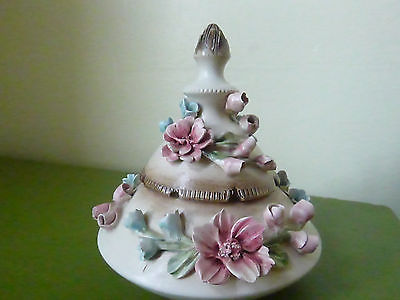 VINTAGE CAPODIMONTE TRINKET BOX DELICATE FLOWERS BEAUTIFUL VANITY SIGNED TAGGED