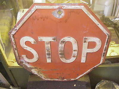 VINTAGE! Metal Embossed Letter STOP Sign--
