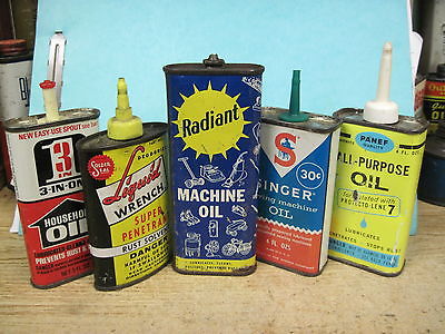lot 5 oil cans SINGER panef radiant 3 in one HANDY HOUSEHOLD fine SEWING MACHINE