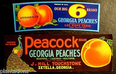 (2) RARE OLD ORIGINAL "BIG 6/PEACOCK BRAND" PEACH LABELS ART GEORGIA