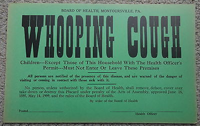 Title (ebay affiliate link): 1909 WHOOPING COUGH QUARANTINE PLACARD BOARD OF HEALTH MONTOURSVILLE PA